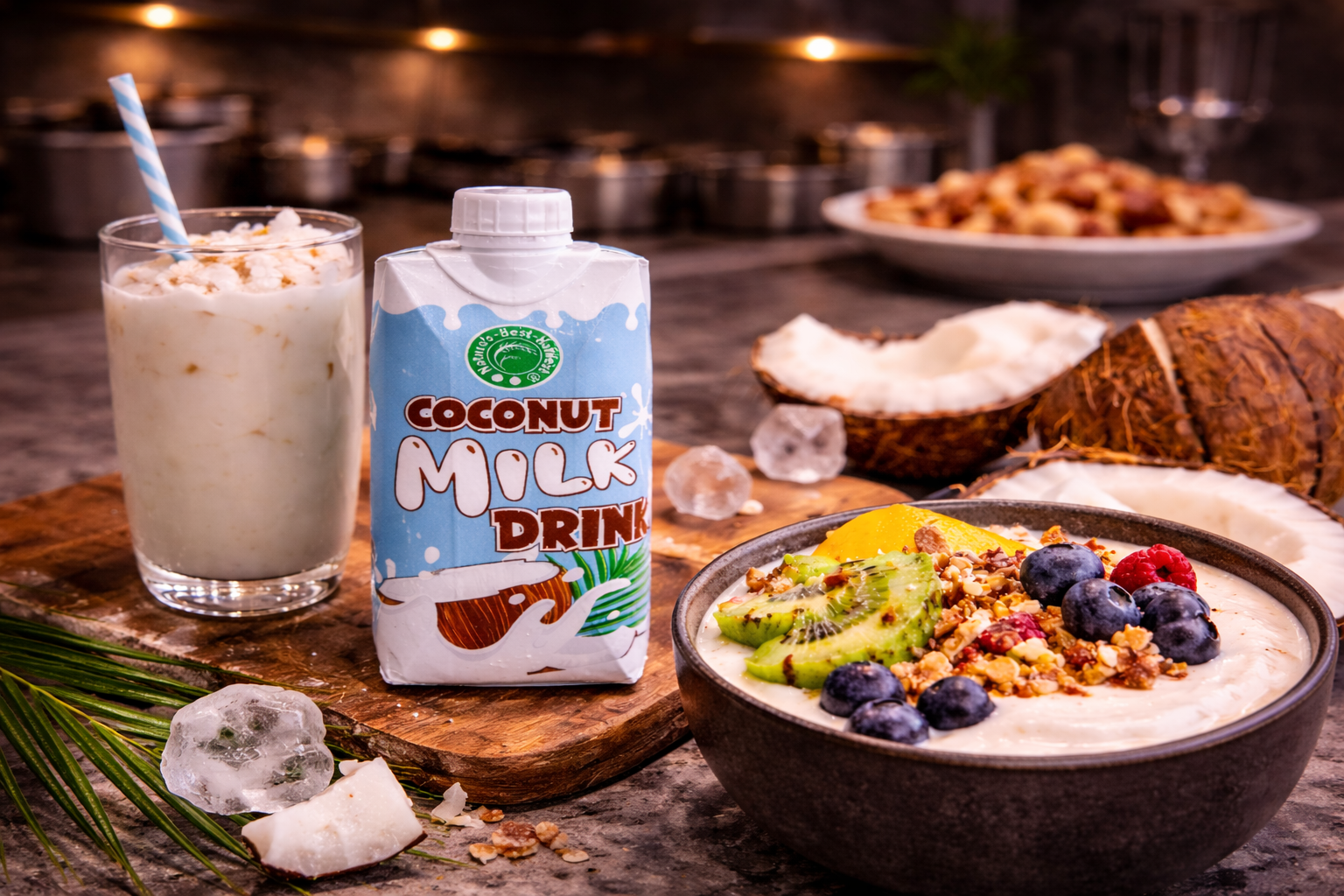 Η χρήση coconut milk drinks σε smoothies, café drinks, desserts και culinary applications είναι ευρέως διαδεδομένη στη διεθνή αγορά τροφίμων και ροφημάτων.